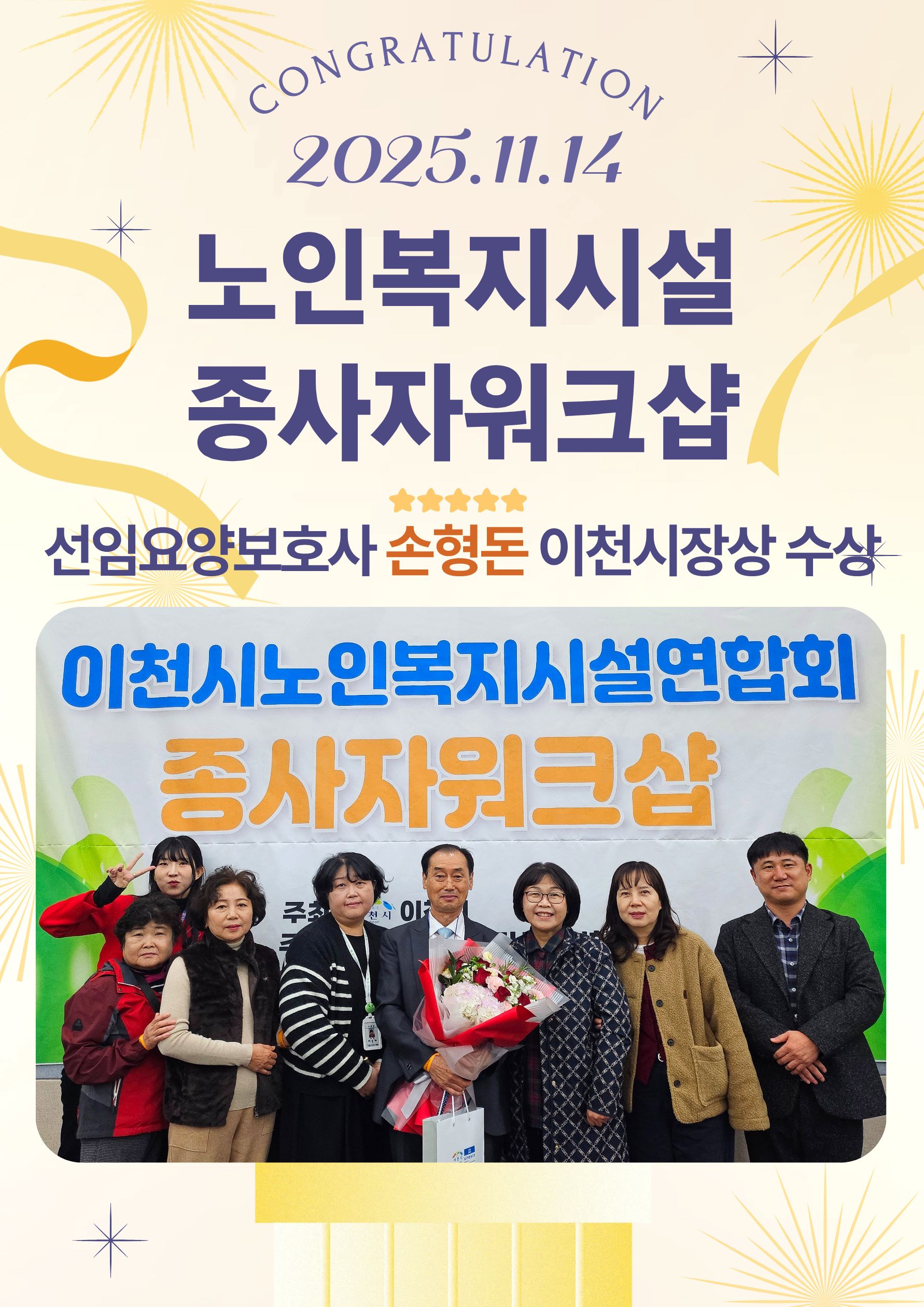 - 이천시 노인복지시설연합회 종사자 워크샵 - 선임요양보호사 손형돈 이천시장상 수상2025-11-21